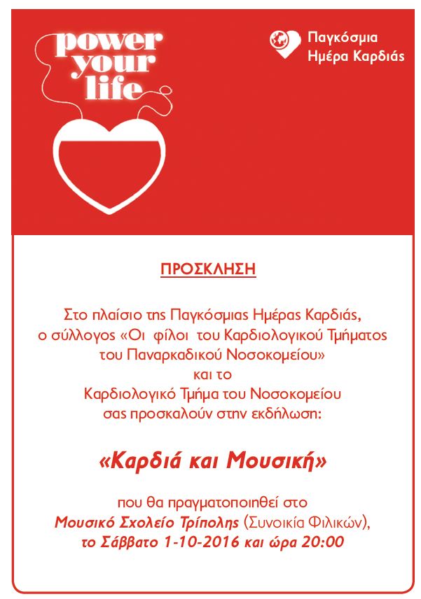 Εκδήλωση για την Παγκόσμια Ημέρα της καρδιάς 12 Σεπτεμβρίου 201612 Σεπτεμβρίου 2016 isarkadias Επικαιρότητα, Ιατρικά Αρκαδικά Νέα